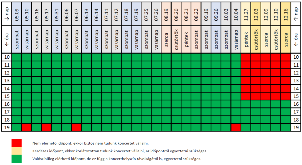 - Csak a meghirdetett koncertidőpontokra lehet jelentkezni.